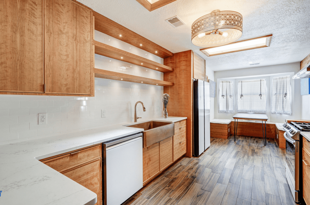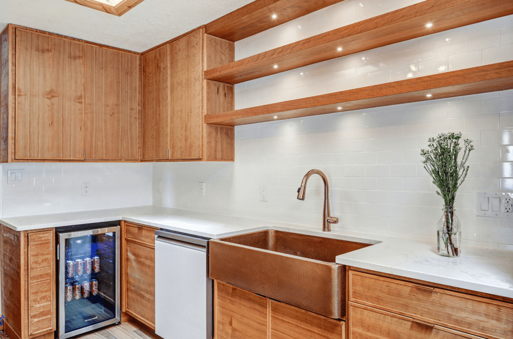 Kitchen remodels can be intimidating. Everything must work together. The appliances need to slip into the cabinet layout seamlessly. I have completed more than 50 kitchen remodels. I have options for affordable new cabinetry, either stained or painted finish, in several door styles. I also have the option of building custom cabinet (see above) with open shelving and integrated led lighting. A product I use for finishing custom cabinetry is Rubio Monocoat and I encourage you to visit the manufacturer’s website for more information. This is the same product I use on custom furniture.
