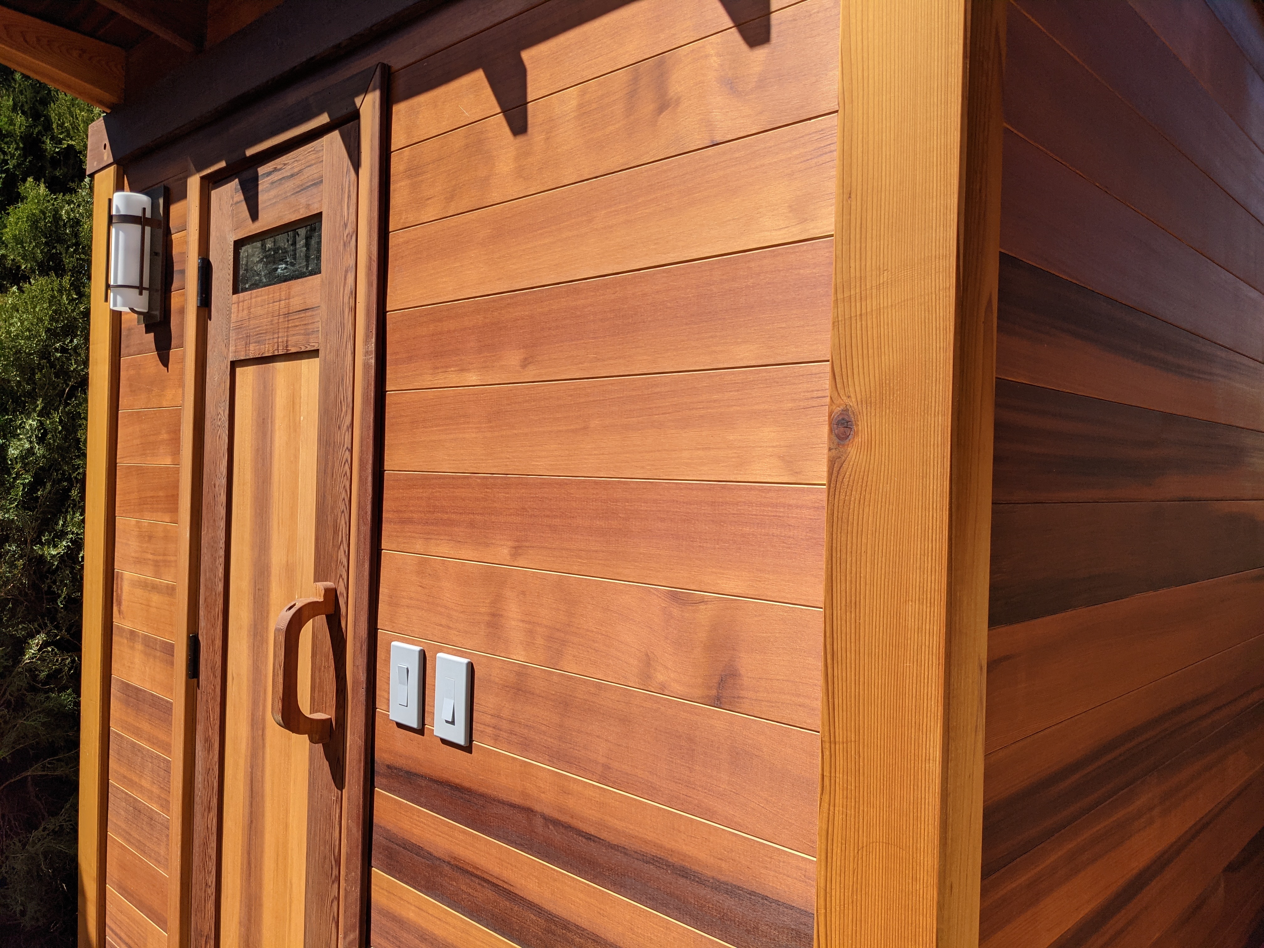Enjoy the deluxe sauna experience crafted with premium cedar for ultimate relaxation. Customized features include an outdoor shower to enhance your before-and-after sauna routine. Other options include interior mood lighting and exterior lights and outside air dampers.
